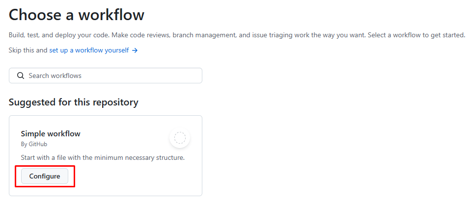In your Repo Actions tab -> New workflow -> Simple workflow (configure)